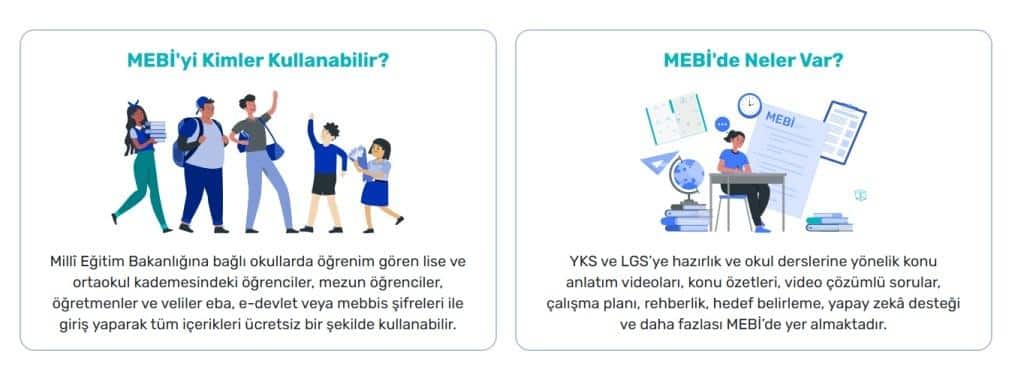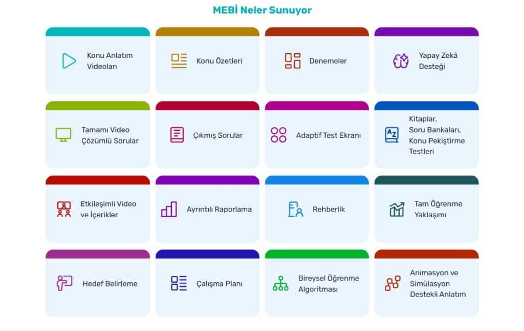 MEBİ bireysel öğrenme platformu. Tüm öğrencilerin derslerim pekiştirmelerine, konu tekrarlarını istedikleri zaman yapmalarına, ihtiyaç duydukları içeriklere hızlı ve kolay bir şekilde erişim sağlamalarına imkân tanıyan yapay zeka destekli platform.